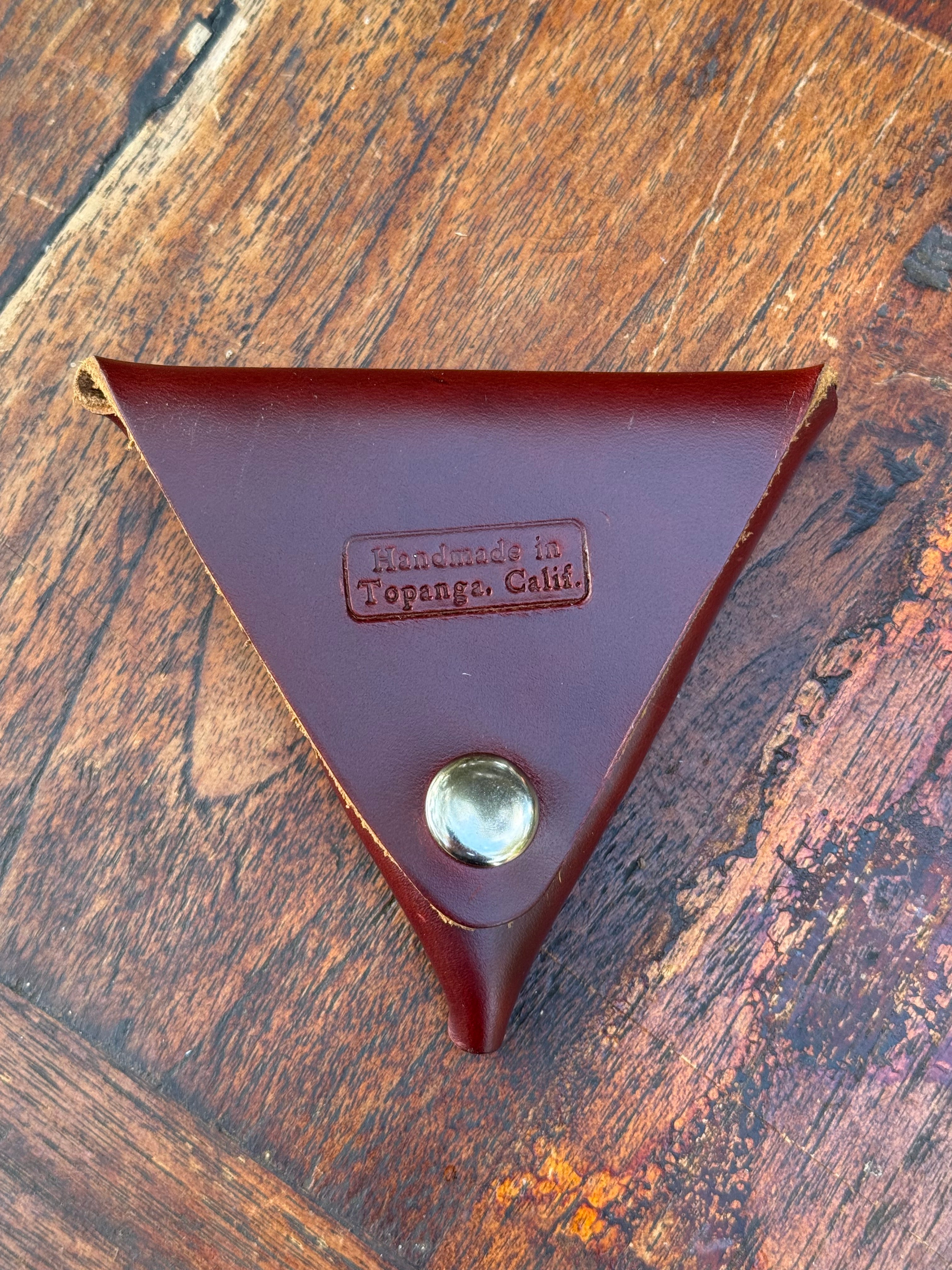 Keep your coins or small nuts and bolts safe and stylish with our Triangle Change Pouch! This handmade leather pouch is the perfect size and shape to store all of your loose change. No more digging through your bag to find those elusive coins!